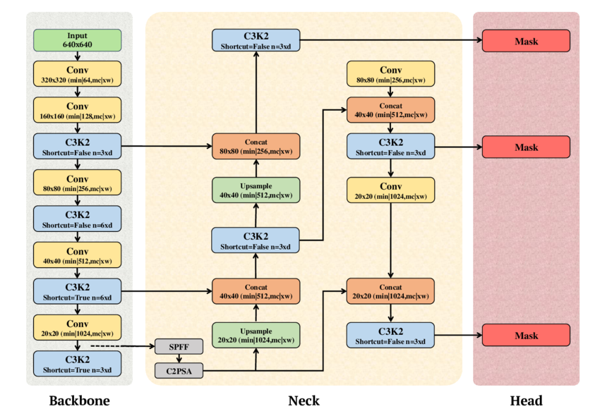 YOLOv11 uses a unified backbone shared across detection, segmentation, and pose estimation tasks, combined with modular task-specific heads. This design supports efficient scaling and streamlined deployment in production environments.