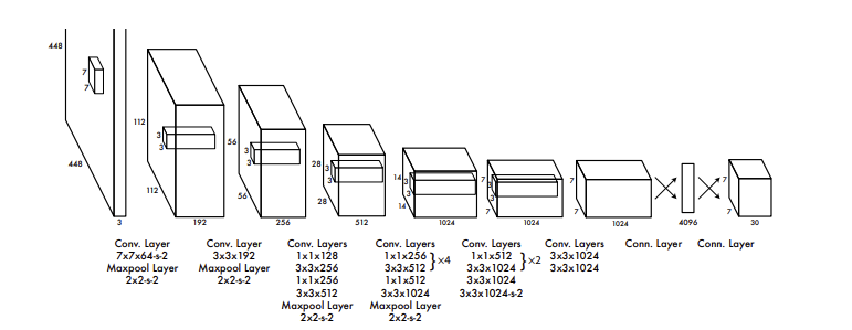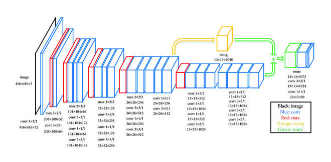 YOLOv2 uses Darknet-19 as its backbone network, which consists of 19 convolutional layers and 5 max-pooling layers. The architecture is fully convolutional, removing the fully connected layers used in YOLOv1. This design improves spatial generalization and allows the network to process images of different sizes.