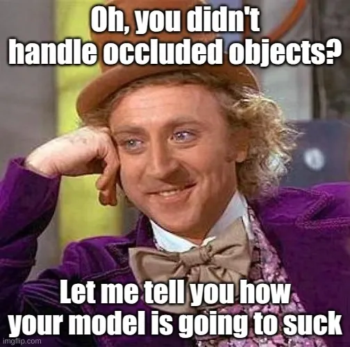 - Solution: Combine object detection with instance segmentation (e.g., Mask R-CNN), and ensure all occluded objects are labeled properly; otherwise, you risk this: