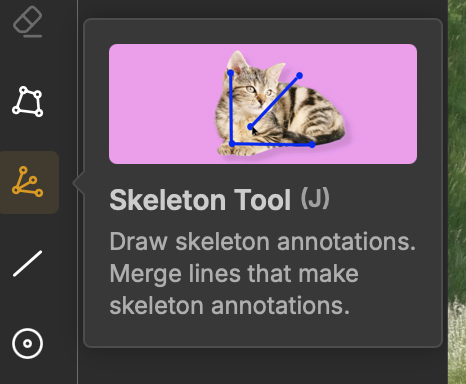 Select the Skeleton tool from the left toolbar. Click Add Class and choose Skeleton Tool as the annotation type.