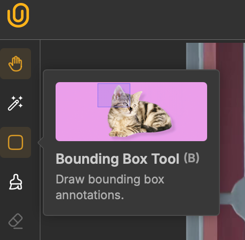 After selecting the bounding box tool, click and drag to draw a rectangular box around the object of interest.