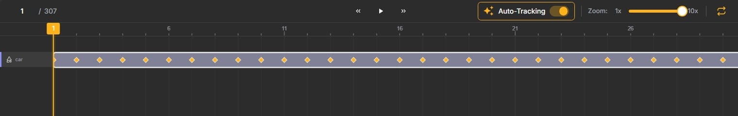 After tracking completes, scrub through the timeline to review the results. In most cases, for objects with predictable motion, the auto-tracking will be highly accurate. When you spot errors, make corrections on specific frames. Every time you manually adjust an annotation, a new keyframe is created.