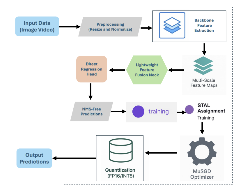 Second, the decoding path is redesigned to support full end-to-end real-world inference without using Non Maximum Suppression. Rather than producing overlapping predictions that require additional filtering, the detection head outputs a compact and clearly structured set of results directly. This removes a traditional latency bottleneck and eliminates deployment configuration parameters such as IoU and confidence thresholds, which often require manual tuning in real-world production systems.